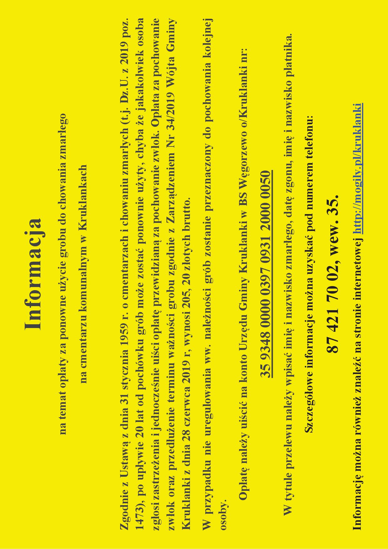 W przypadku nie uregulowania w/w należności grób zostanie przeznaczony do pochowania kolejnej osoby.