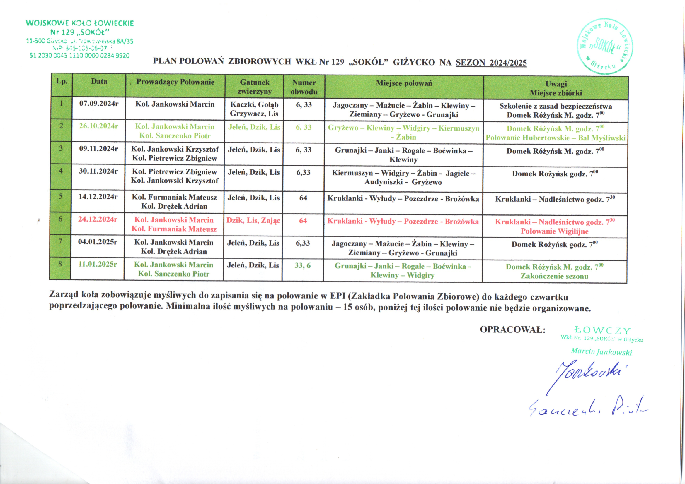 Wersja nieobowiązująca z dnia 20-09-2024 07:18:46 Drukuj Harmonogram polowań zbiorowych w sezonie 2024/2025 Załączniki Harmonogram polowań zbiorowych w sezonie 2024/2025 Koła Łowieckiego Sokół Giżycko format: image/png, rozmiar: 2.57 MB, data dodania: 20-09-2024 07:18:46 Wersja nieobowiązująca Strona może zawierać nieaktualną treść i załączniki. Możesz pozostać na tej stronie lub przejść na wersję z obowiązującą zawartością. Nie pokazuj ponownie Pozostań Przejdź do wersji obowiązującej